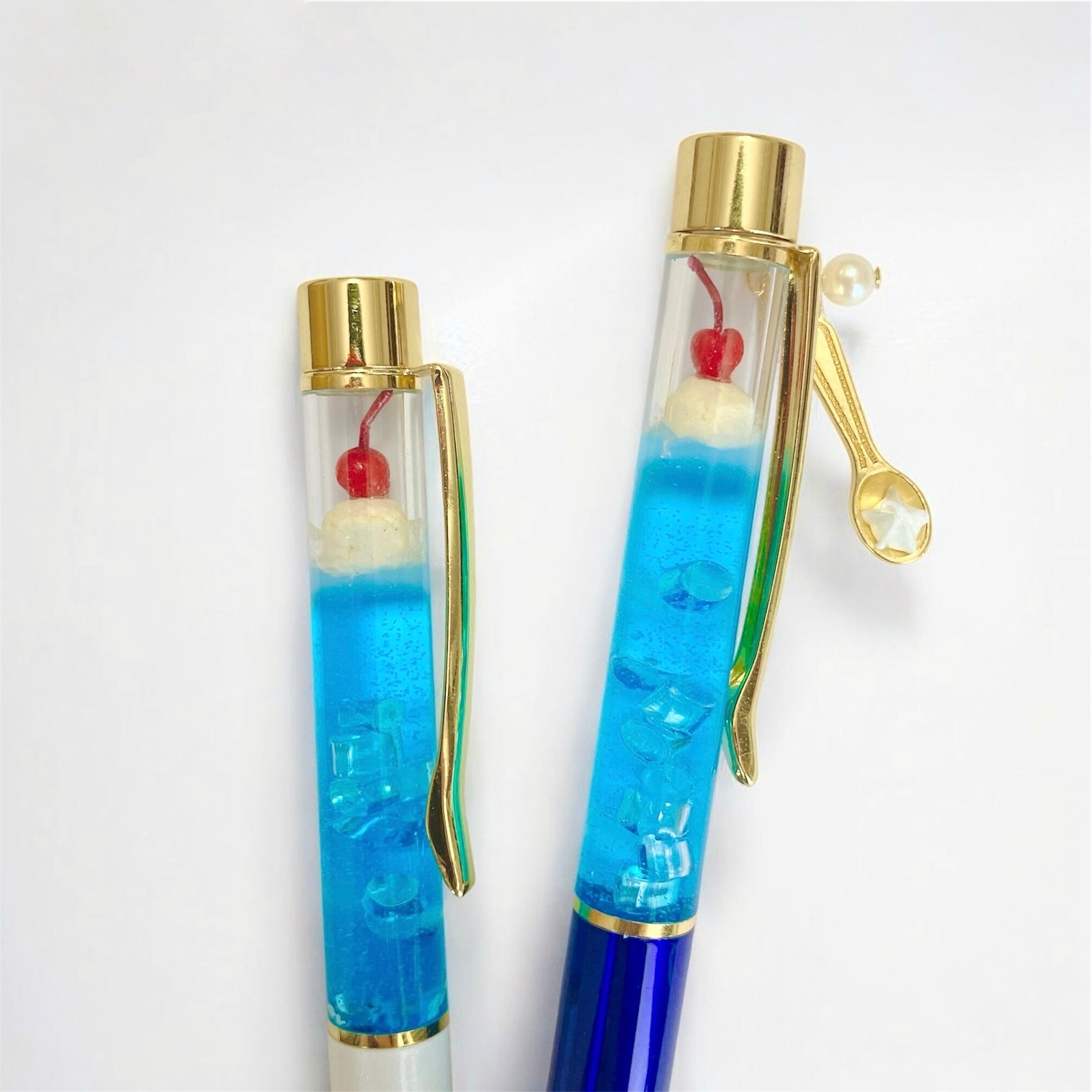 《ボールペンの中の小さなレトロ喫茶》青色クリームソーダのボールペン